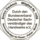 Für eine optimale fachliche Betreuung und Qualitätskontrolle ist der Geschäftsführer Herr Dauksch geprüfter Sachverständigengutachter im Bereich Fliesen, Platten und Mosaik