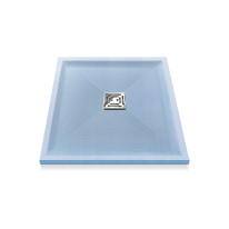 Die tiefe Duschwanne mit Punktablauf profitiert von einer minimalen Gesamteinbautiefe. Dabei sind Ablauf und Dichteinsatz schon vormontiert. Auch sind die Abdichtungs- und Entkopplungsbahn bereits ab Werk integriert.